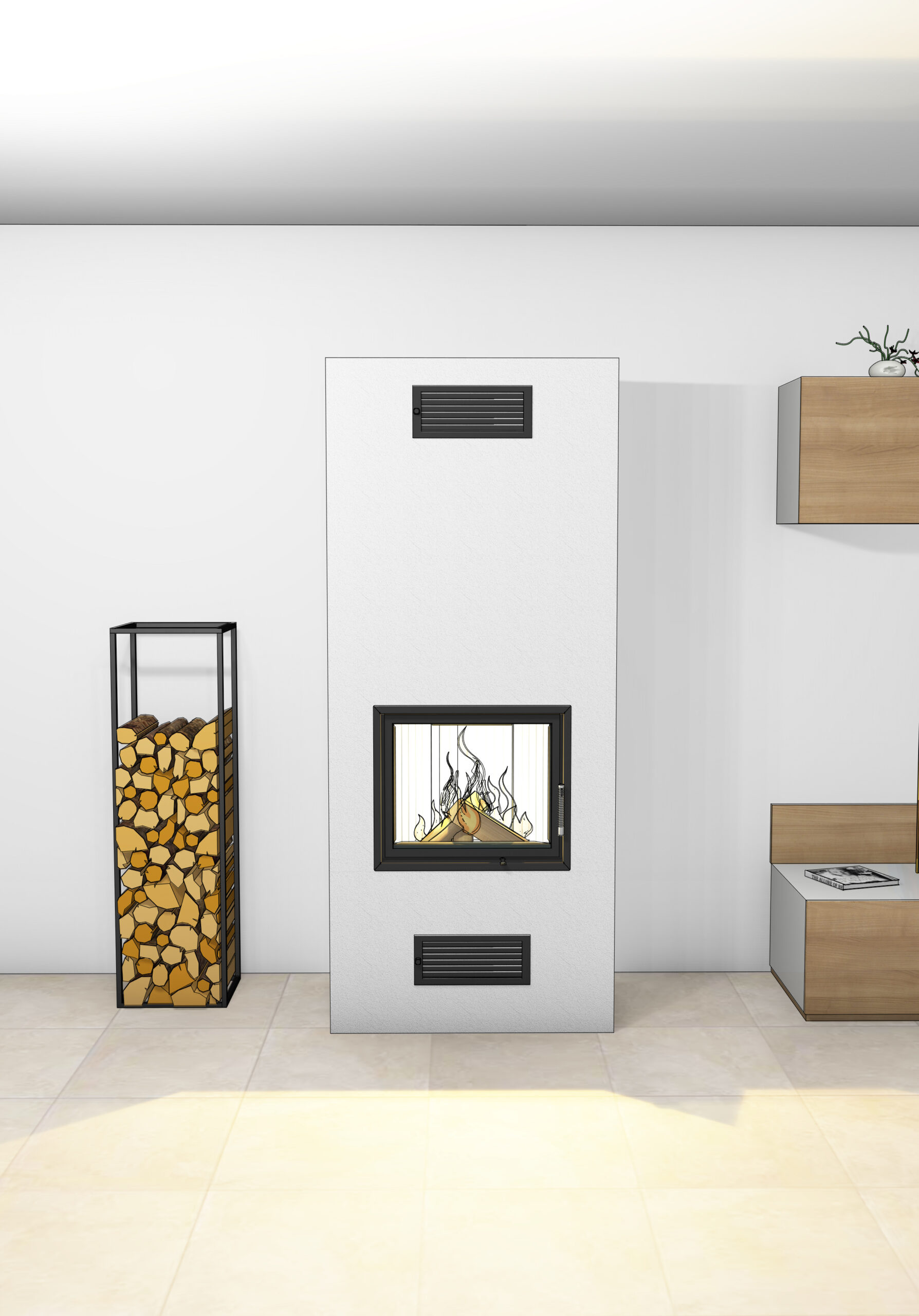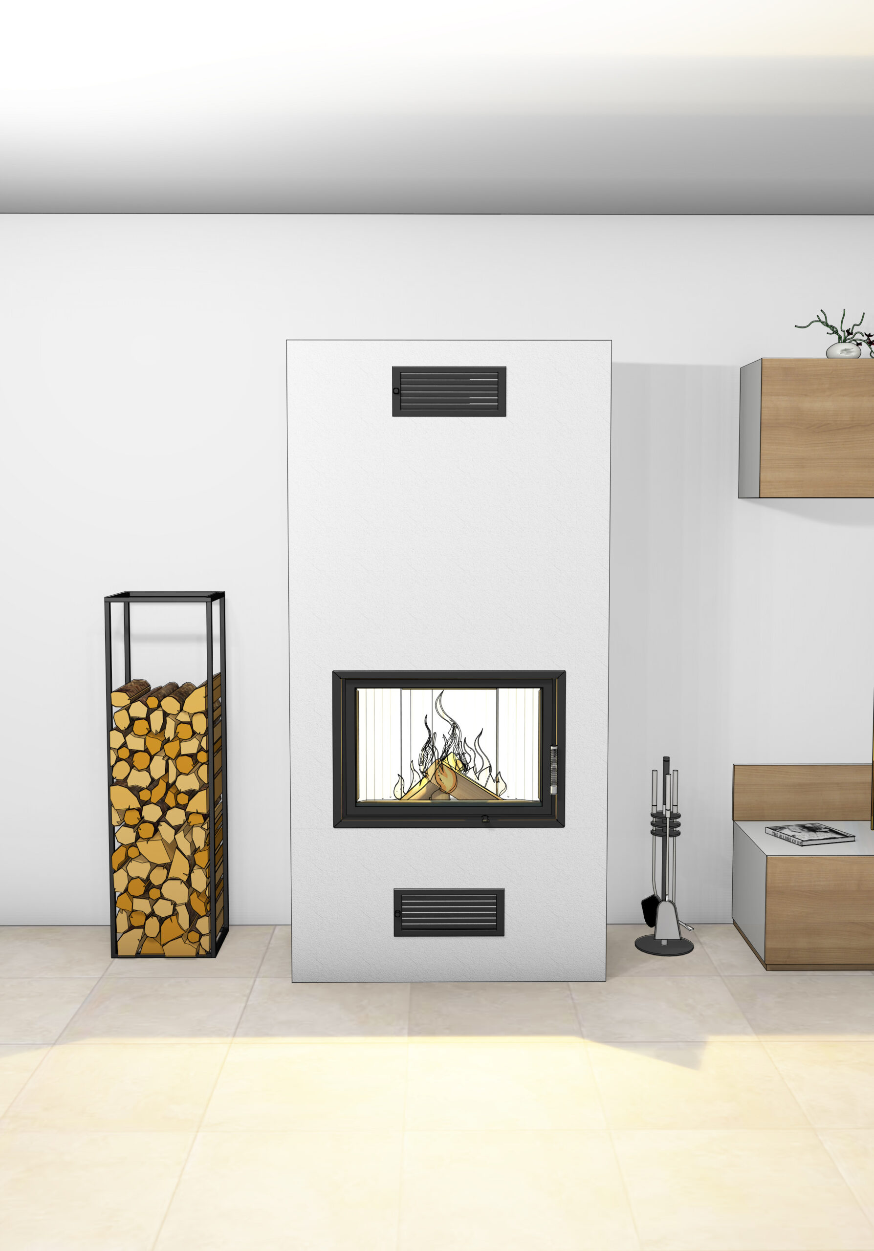 Kamin z ravno zasteklitvijo v velikosti 69 x 45 cm in stranskim odpiranjem.