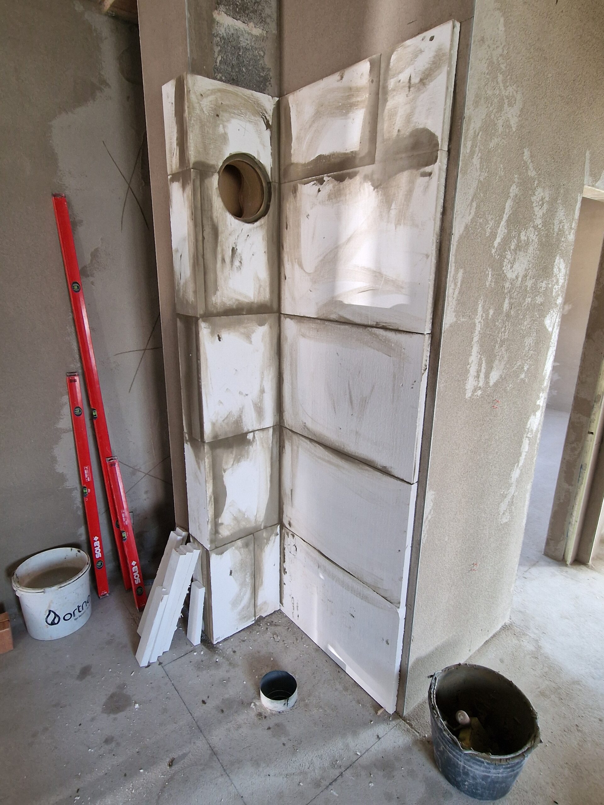 • Spodnji del kamina obzidamo s siporeksom ker material na dnu ne igra bistvene vloge pri delovanju kamina, je pa cenovno ugoden